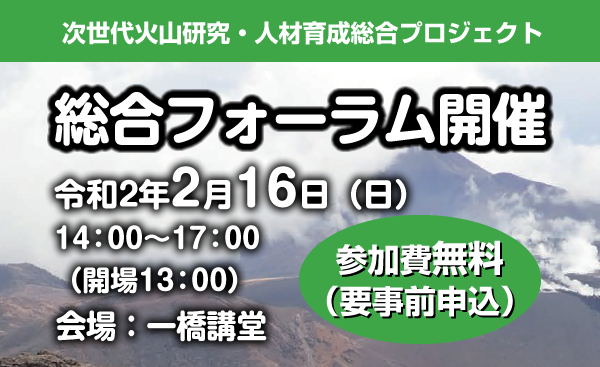 来る2月16日(日)次世代火山研究人材育成総合フォーラムが開催されます。